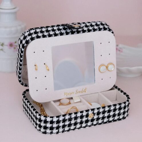 Boite à bijoux de voyage pied de poule noire – Maison Scarlett